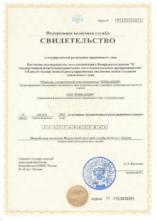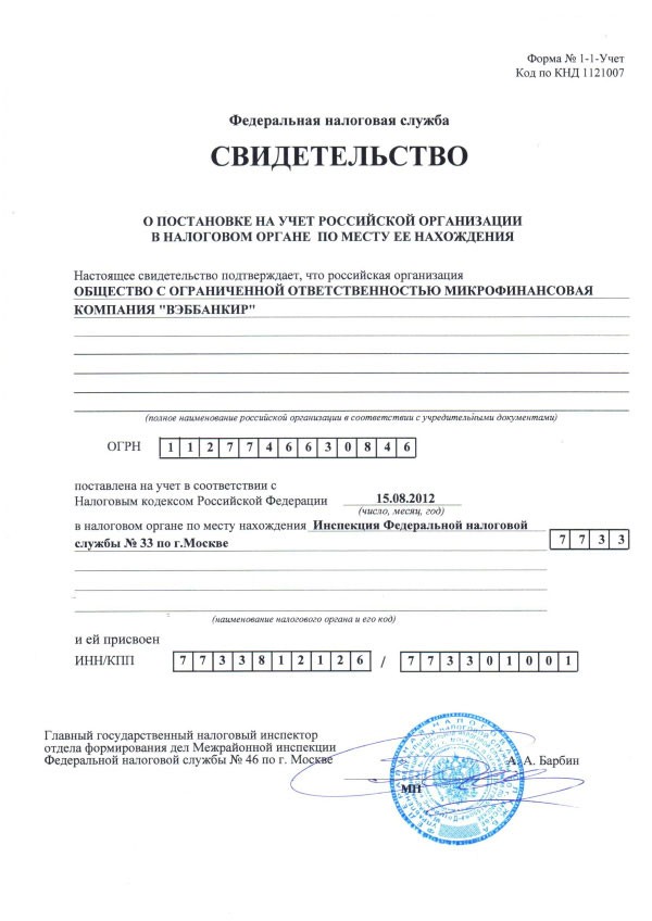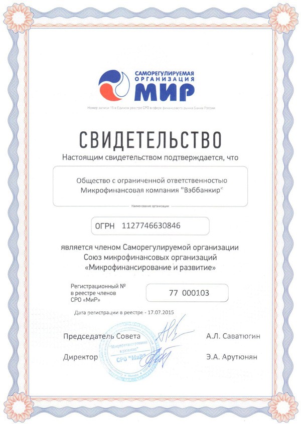 | Полное наименование | ООО МФК «Вэббанкир» |